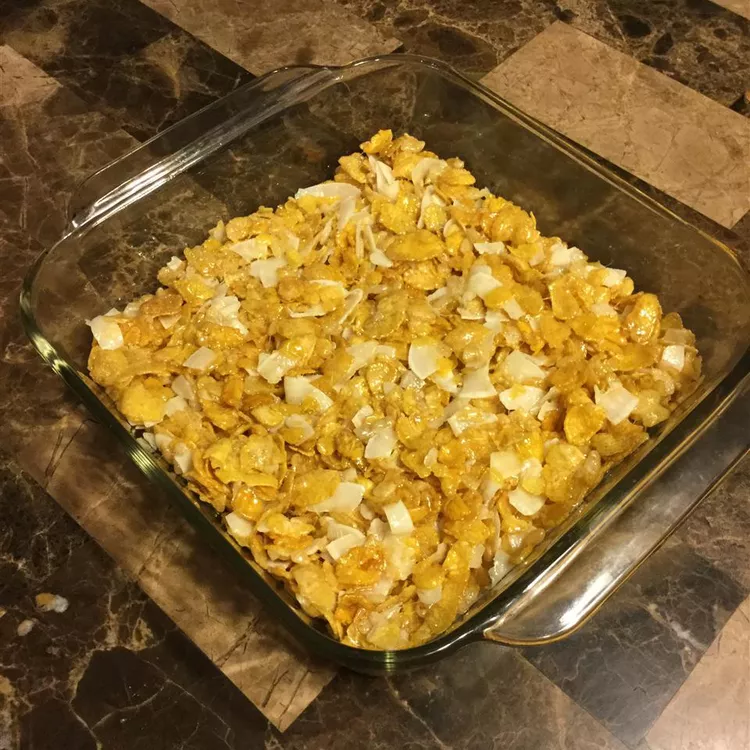 Great recipe, even better than crispy rice squares!!! These have marshmallows, coconut, almonds and cornflake...