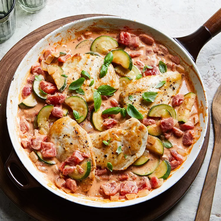 Chicken cutlets cook quickly and are highlighted with a creamy sauce made with tomatoes, zucchini and Italian seasoning. This recipe is sure to...
