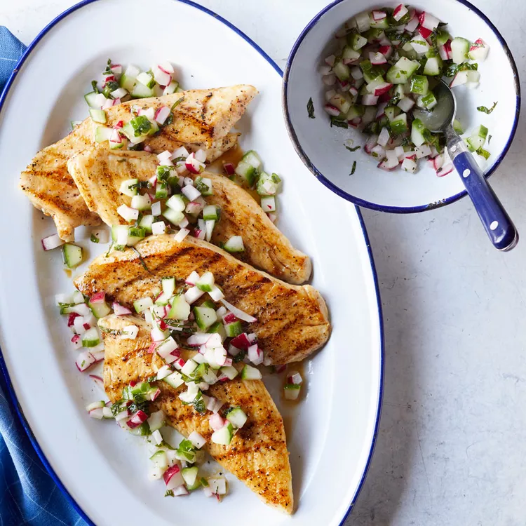 Fresh salsa dresses up grilled chicken--or any other meat for that matter--in this healthy chicken...