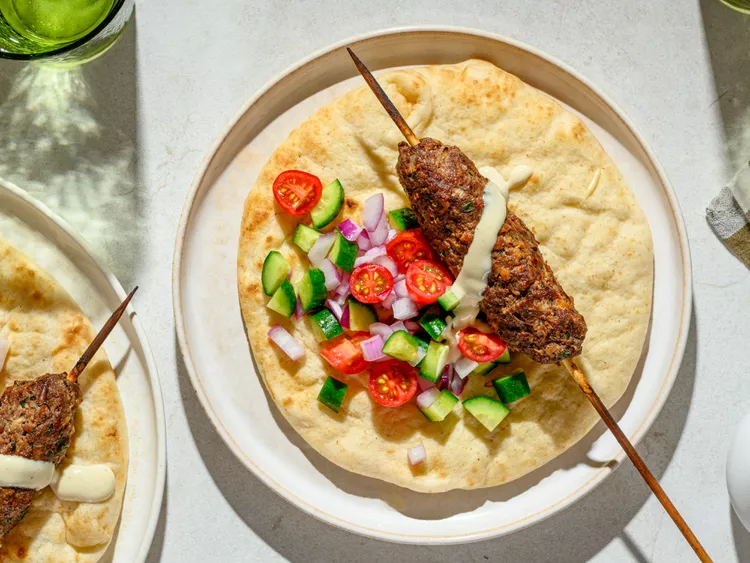 These grilled kofta kebab skewers made with a mix of ground beef and lamb are...