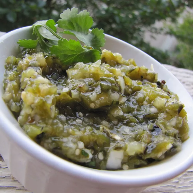 Roasted-pepper green salsa just like grandma makes it, well, minus the molcajete. It's just easier...