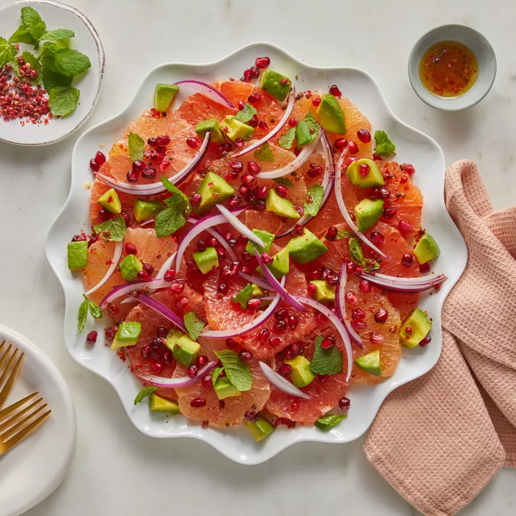 This colorful grapefruit salad features a wonderful balance of textures and flavors. Pomegranate seeds and...