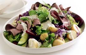 A hearty salad combining chunks of roast beef and tender potatoes tossed in a tangy...