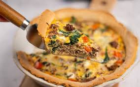 A savory breakfast or brunch dish with seasoned ground beef, cheese, and eggs baked into...