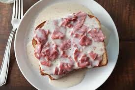 Thin slices of dried beef in a creamy white sauce, traditionally served over toast or...