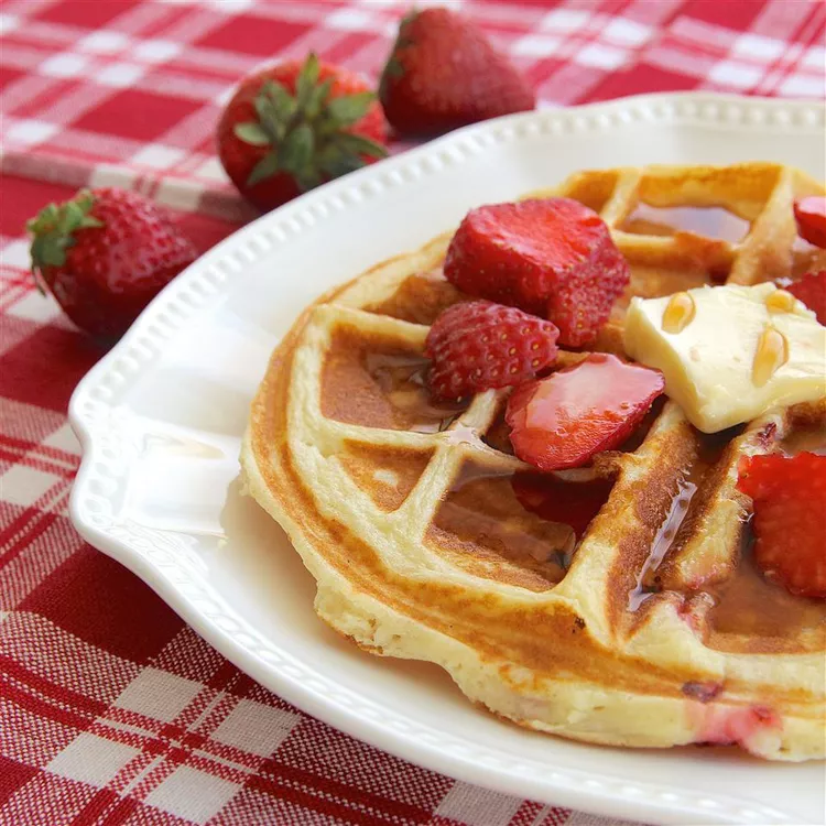 A rather quick and easy waffle recipe, with the added goodness of fresh strawberries. Serve...