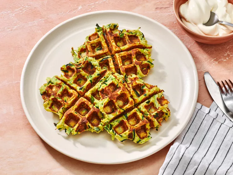 A gluten-free waffle using zucchini and dry potato flakes--think green eggs and ham. Serve with...