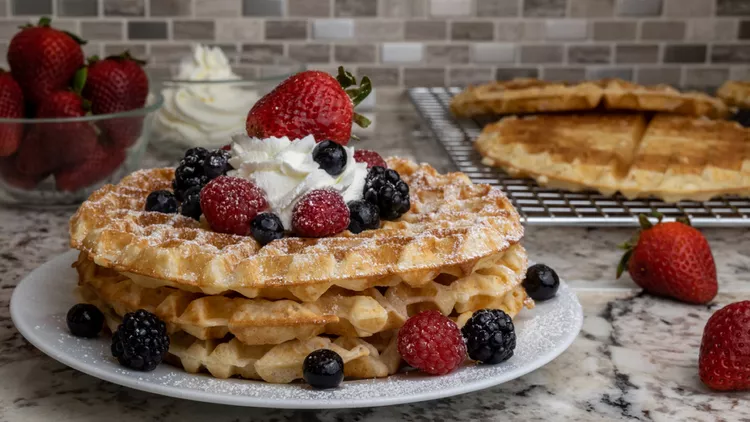 This Belgian waffle recipe makes the perfect amount of batter for three fluffy waffles in...