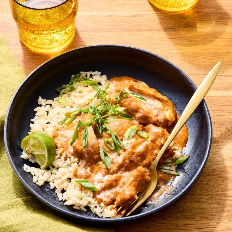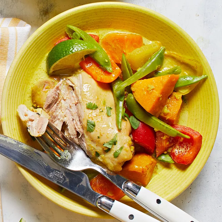 A slow cooker makes easy work of this colorful coconut curry dinner-but don't just toss...