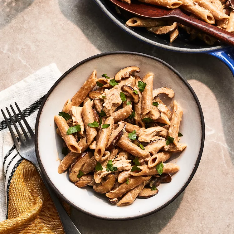 This creamy chicken and mushroom pasta recipe makes for an easy weeknight dinner. Using store-bought...