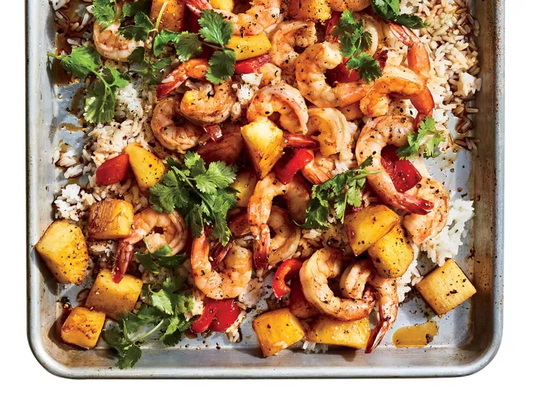 Sheet Pan Shrimp Pineapple & Peppers with Rice