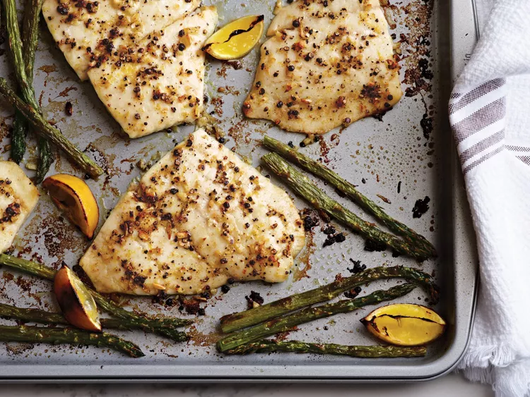 For this baked flounder recipe, use fresh lemon, good olive oil, freshly ground peppercorns and...