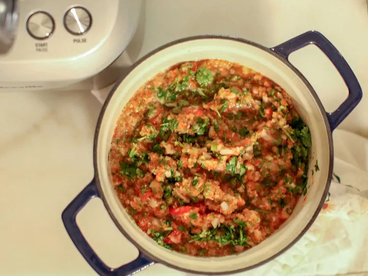 The quick 10-minute Spicy Cabbage Slaw serves as the low-carb base in this veggie-packed lunch...
