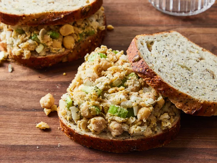 Spread this chickpea sandwich filling on crusty whole grain rolls or pita bread and serve...