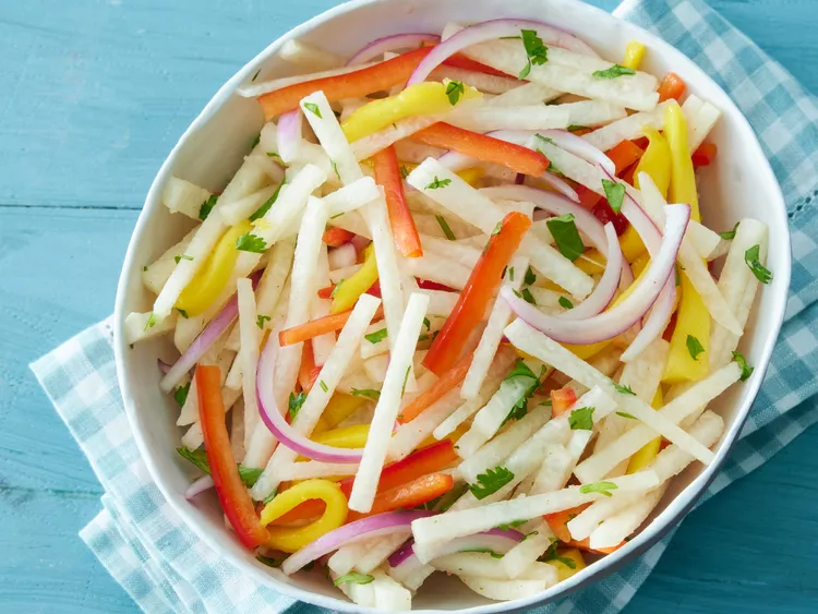 This crunchy jicama salad is crisp and refreshing. It goes really well with any Mexican or Asian dish.