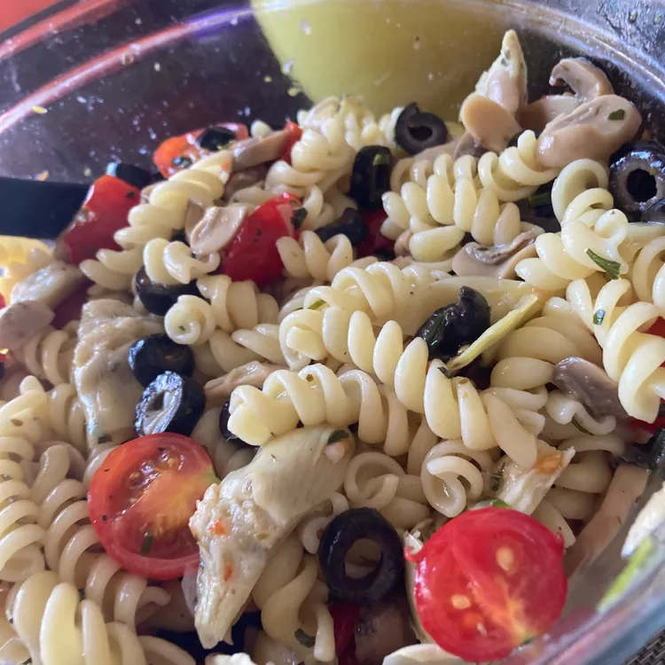 This pasta salad is quick and easy to make. The liquid from the marinated artichoke...