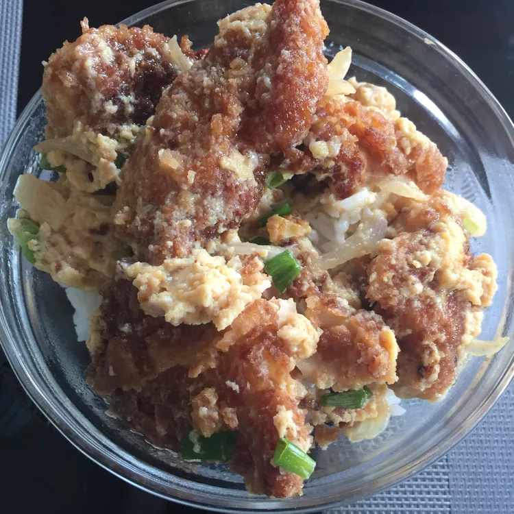 Recipe for a popular Japanese rice bowl, also known as Katsudon. Garnish with sliced green...