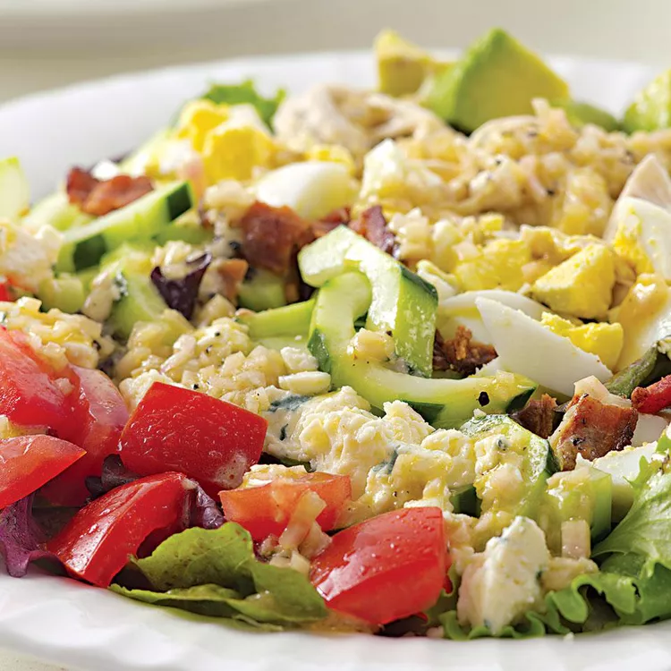 This Cobb salad recipe is true to the original with all the good stuff--chicken, eggs,...