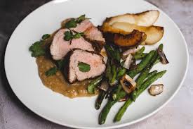 Tender pork braised with fresh pears and a light wine sauce for a subtly sweet,...