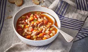 A light yet satisfying soup with tender pork chunks and assorted vegetables in a clear...
