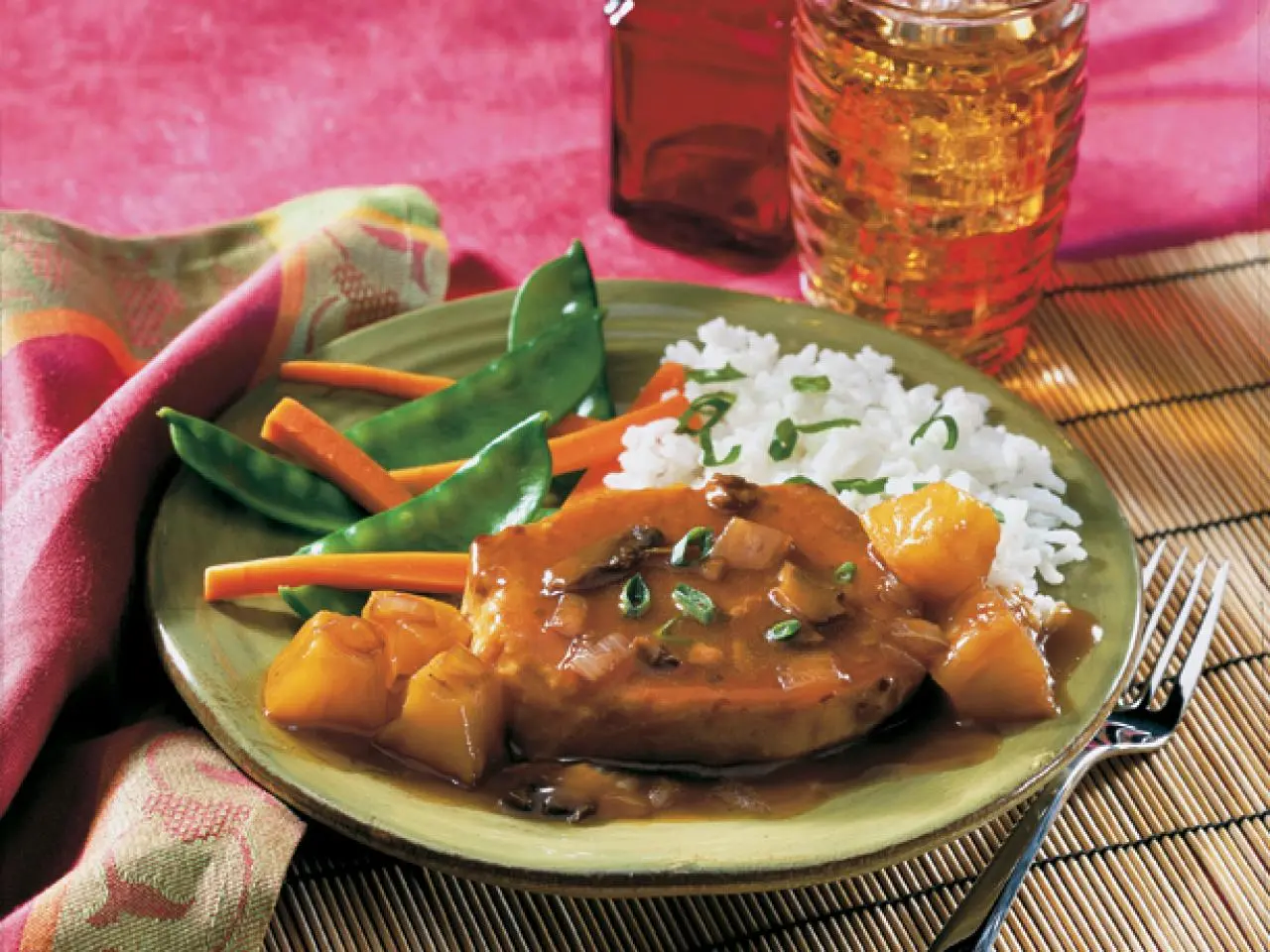 Tropical flavors meet savory pork in this island-style dish with pineapple, soy sauce, and ginger...