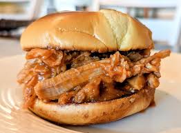 Shredded or sliced pork served on rolls with a tangy BBQ or vinegar-based sauce—perfect for...