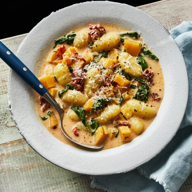 Slow Cooker Creamy Sun-Dried Tomato Gnocchi with Delicata Squash & Spinach