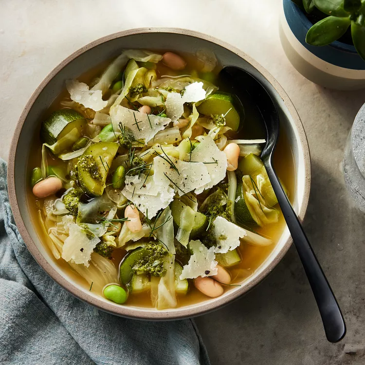 A strip of Parmesan rind in the broth gives this minestrone soup a deep, layered...