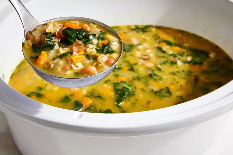 Beans and kale are packed into each bite of this hearty slow-cooker soup. Barley provides...