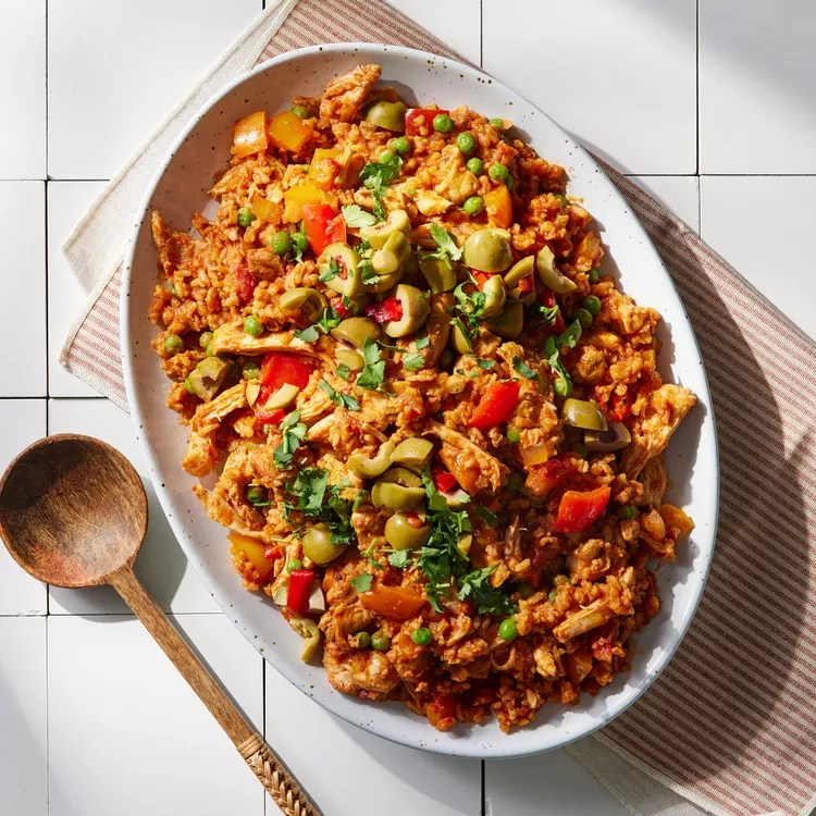 This one-pot chicken dinner, inspired by the traditional dish of Spain and Latin America, comes together easily in the slow cooker.